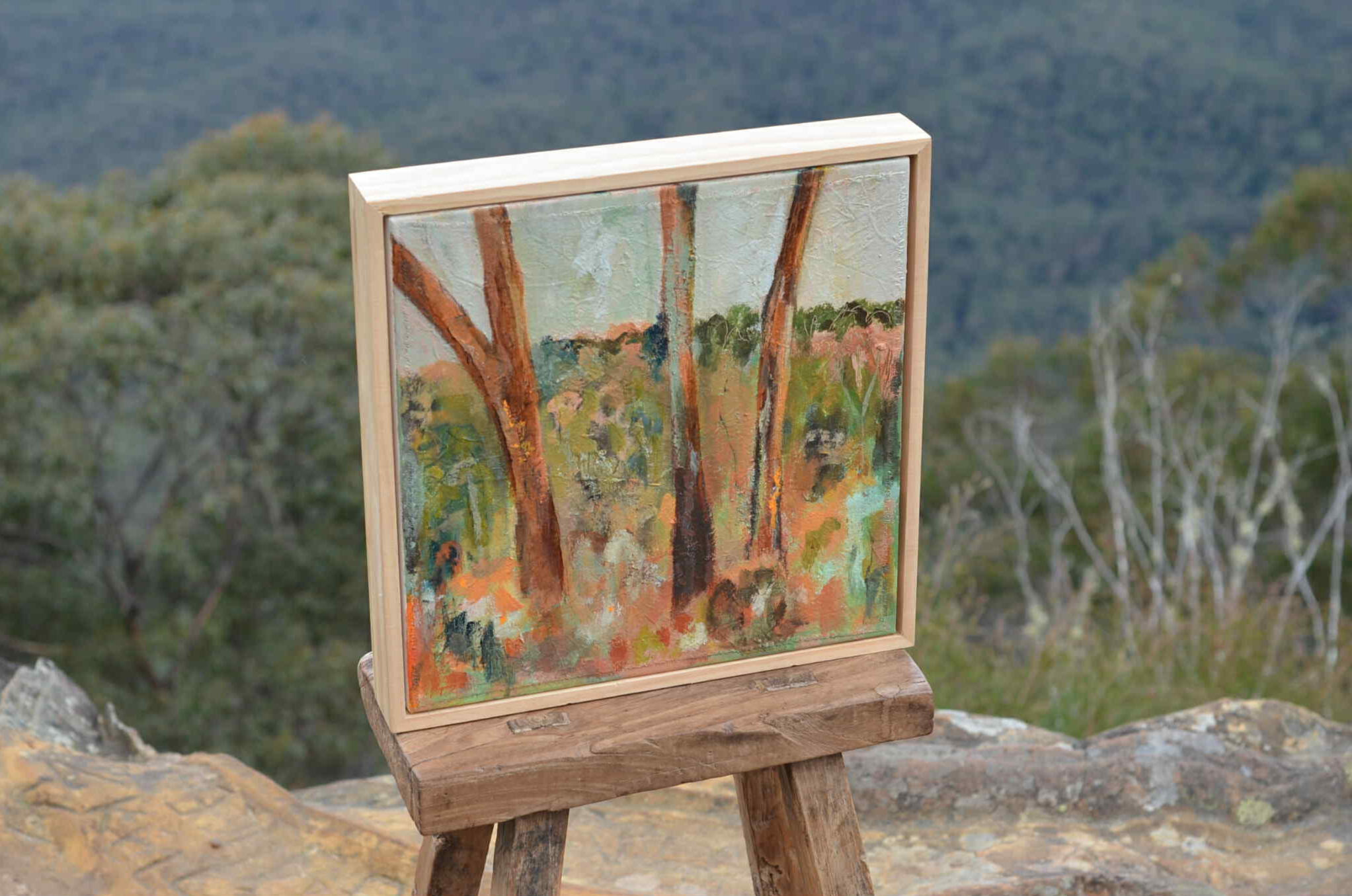 Georgia Buckley, an emerging Australian artist with a passion for capturing the raw beauty of her homeland's landscapes, particularly the native flora and iconic gum trees that define the Australian bush. Primarily working with acrylics, Georgia's artistic process is a tactile exploration of texture and colour. She builds her canvases with mixed media, incorporating natural materials like sand to create a rich surface that reflects the uncultivated Australian landscape. Drawing her palette from the vast hues of gum trees, she paints in natural light, allowing the colours to shift and evolve throughout the day.Georgia finds solace and resonance in the act of painting. Immersing herself in the colours and grit of the landscape, she experiences a feeling of complete creative absorption. Her bold and expressive brushwork, combined with her unique approach to layering colours and textures, results in paintings that capture the essence of the Australian landscape. Through her art, Georgia invites viewers to connect with the environment on a deeper level, experiencing its complexity through her own personal lens.